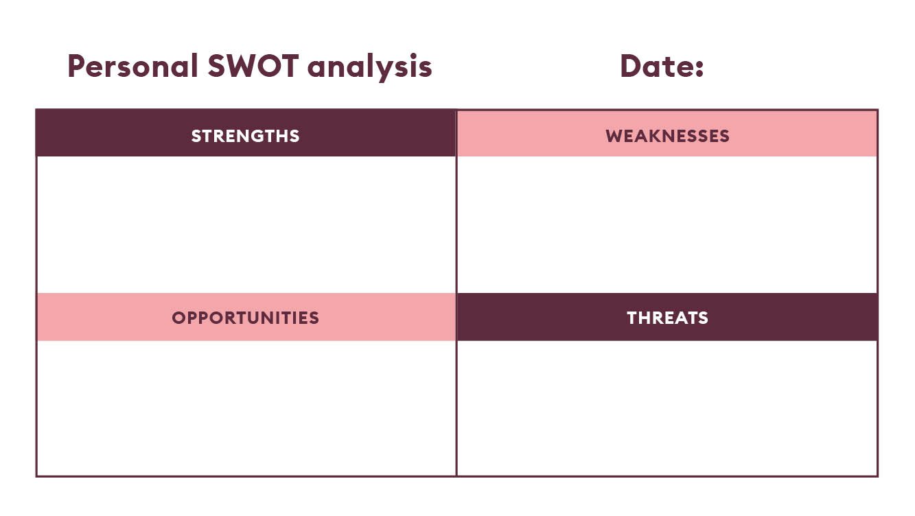 Personal SWOT analysis starts with the same 2 x 2 grid as for an organisational SWOT.