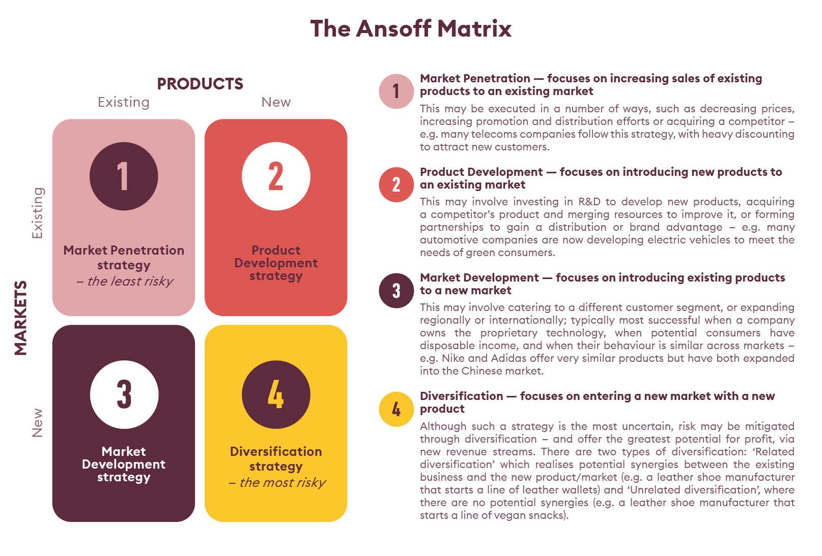 The Ansoff Matrix – deciding which products or services to offer, and to which markets