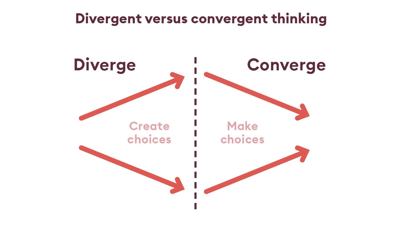 By contrast, convergent thinking is logical and linear, focusing on narrowing and evaluating our options and honing them into workable solutions. This is a quicker way to arrive at an answer, but less likely to generate innovative ones.