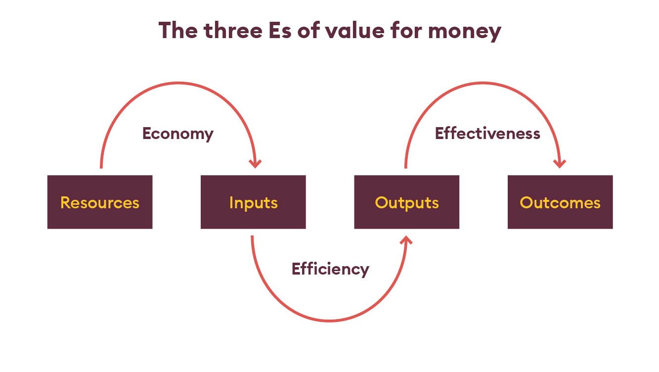 It’s also often described in terms of the ‘three Es’: economy, efficiency and effectiveness: