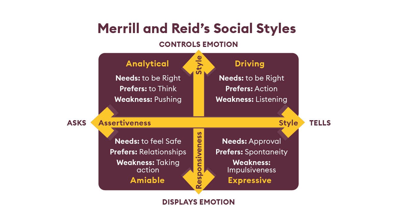 Thirty years ago, psychologists David Merrill and Roger Reid set out their theory of social styles. They also identified four dominant behavioural styles, each with its own language, thought processes and approach to business. These are: