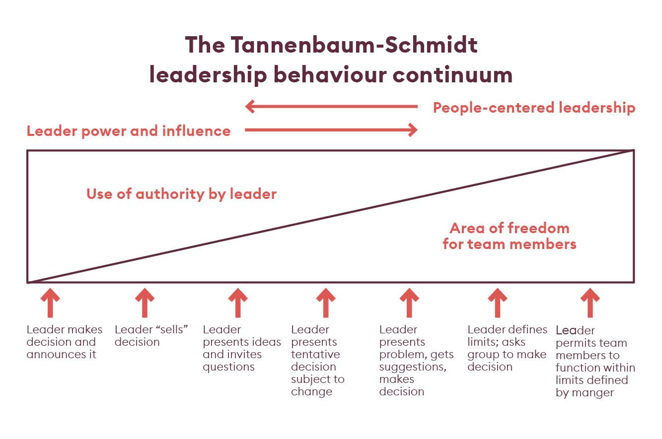 It’s a conundrum encapsulated in a leadership model first explored in a classic Harvard Business Review article by Robert Tannenbaum and Warren H. Schmidt. Their continuum of leadership behaviour speaks to the fact that we may feel torn between exercising “strong” (more directive or autocratic) leadership, and something that’s more “permissive” (or democratic). We may flip-flop between knowing that we should involve others and the feeling that our experience makes us best placed to decide and act on our own.